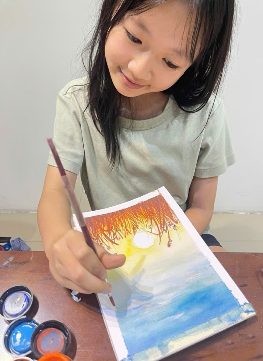 Không chỉ là bài học vẽ, mà còn là khoảnh khắc các bé ghi lại vẻ đẹp dịu dàng của thiên nhiên bằng sắc màu và cảm xúc của chính mình.